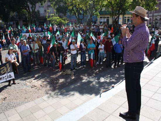 O presidente da Fetag, Carlos Joel da Silva, disse na Praça Saldanha Marinho, onde houve o momento político da manifestação, que parece que o governo brasileiro abandonou a agricultura familiar.
